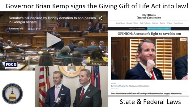 In the time since, Will has testified before legislative committee and I have authored and successfully passed the “Giving the Gift of Life Act” in Georgia in 2022. Together, we are working on assisting other states pass this legislation as well as testifying at committee for federal legislation. This spring, Will and I worked with our friend Dave Galbenski to bring the first Living Donor Awareness night to the Atlanta Braves. Will spearheaded conversations with the TSA and the airline industry and we are lobbying to bring the organs back to cabin of airplanes for travel. Since 9/11, several hundred organs have been damaged or lost due to being stored in the cargo area. We also work with countless wonderful organization solving problems, mentoring families, and paying it forward.